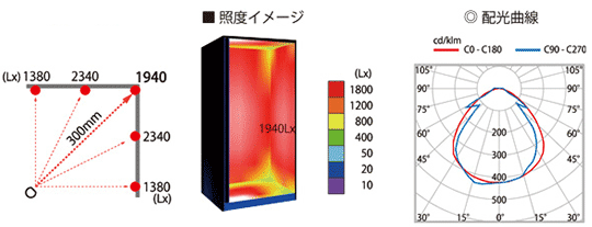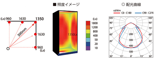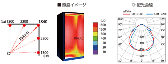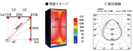 灯具900mm 照射距離300mmの場合