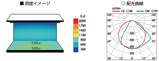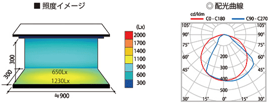 ワイド896mm 5000K 棚下直下300mmの場合